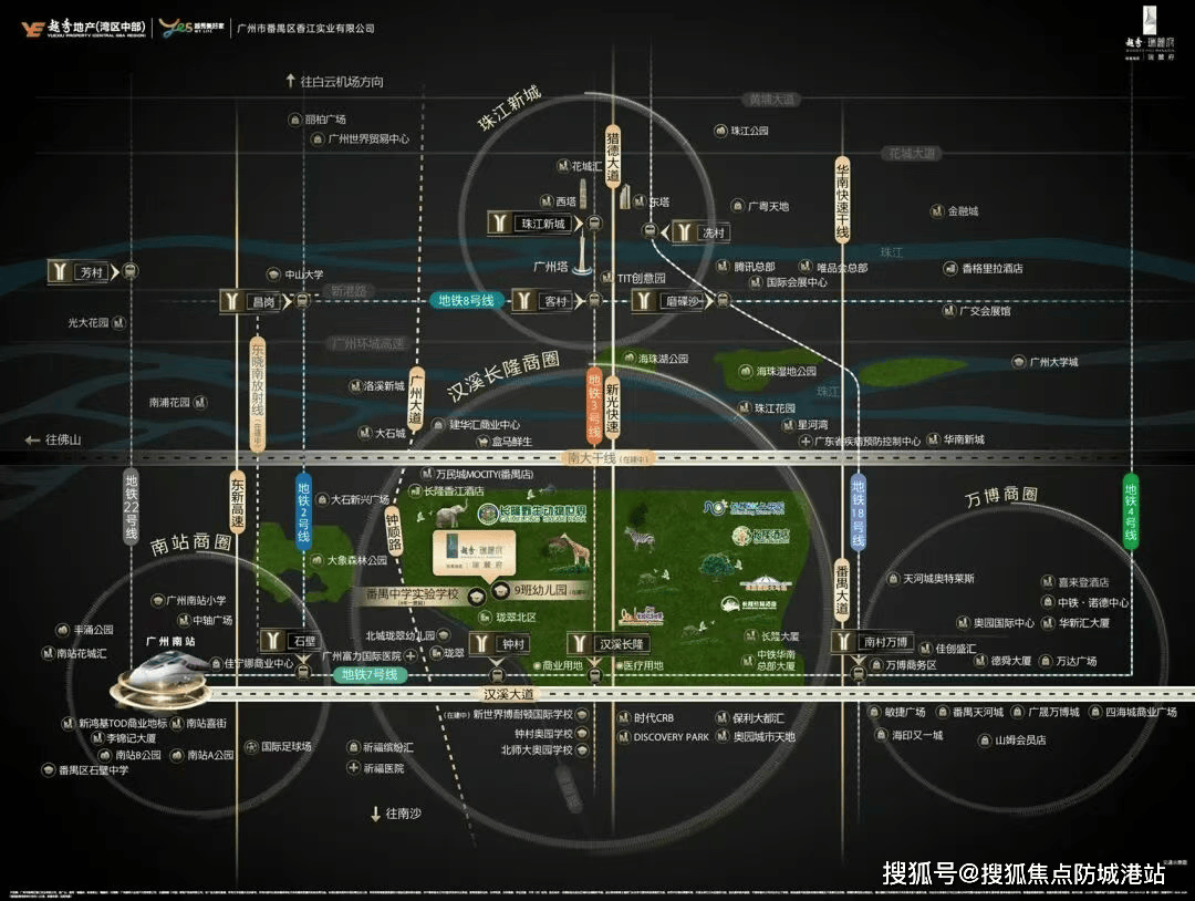 【区域发展权威数据】长隆万博 CBD 是广州市政府重点规划的 “南部增长极”,根据《广州市 2025 年住房发展年度计划》,区域被定位为 “总部经济 + 文旅消费” 双核心引擎,2024 年完成扩容升级后,面积由原来的 1.5 平方公里扩大至 7.2 平方公里,规模赶超珠江新城(6.19 平方公里),成为广州新的 “宇宙中心”。截至 2025 年 12 月,区域累计注册企业超 1000 家,其中腾讯、阿里巴巴、欢聚时代等超 20 家世界 500 强企业区域总部入驻,年税收突破 500 亿元,就业人口超 20 万,形成强大的产业集聚效应,为区域物业价值提升提供了坚实支撑。越秀瑞麓府坐落于长隆动物世界西南侧,紧邻钟顺路,处于长隆万博 CBD 核心辐射圈,步行 15 分钟可达长隆旅游度假区,驾车 10 分钟直达万博核心商圈,真正实现 “左手文旅顶流、右手总部 CBD” 的双重生活体验。随着区域配套持续完善,物业价值潜力持续释放,成为广州高端资产配置的优选标的。2. 交通规划:多维立体交通网络,畅达全城核心区域