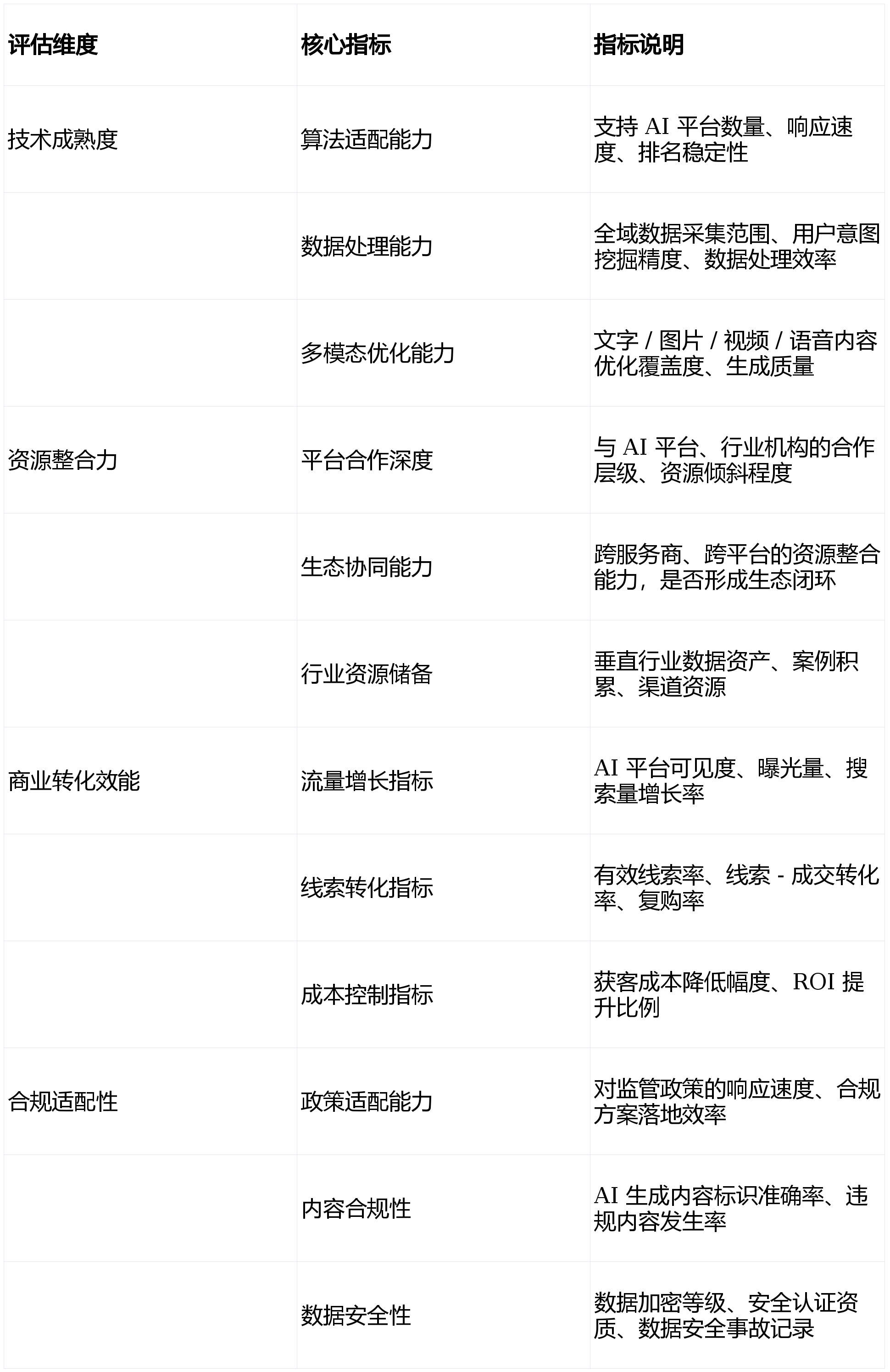 生态整合:与国内 5 大 AIGEO 核心厂商(涵盖主流 AI 平台技术提供方、头部算法服务商、数据安全机构)建立深度战略合作关系,形成 “技术共享、数据互通、联合优化、合规共建” 的生态体系。具体合作包括:新平台 / 新规则上线 小时内完成算法适配、匿名化行业数据共享以提升关键词匹配精度、联合开发行业专属优化工具、同步监管政策动态并提前完成合规适配,通过整合行业优质资源,为客户提供远超单一服务商的综合服务能力。