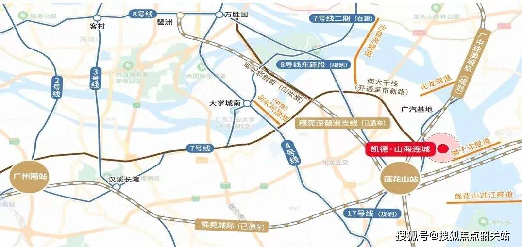 南大干线,作为番禺区东西向的交通主轴,被誉为番禺的“长安街”。这条全长约30公里的城市快速路,东起莲花大道,西至陈村水道,横贯番禺全区,连接了广州大学城、万博商务区、广州南站等多个重要节点。它的全面通车,不仅极大地缓解了番禺区内部的交通压力,更将番禺与广州中心城区的距离大幅缩短。对于凯德·山海连城的业主而言,南大干线就是一条通往繁华的“黄金通道”。清晨,您可以从家出发,沿着南大干线分钟即可抵达万博万达广场,与朋友相约逛街购物;或者继续前行,35分钟即可到达琶洲互联网创新集聚区,开始一天的工作。全程路况顺畅,几乎没有红绿灯的干扰,让您在通勤路上也能保持愉悦的心情。